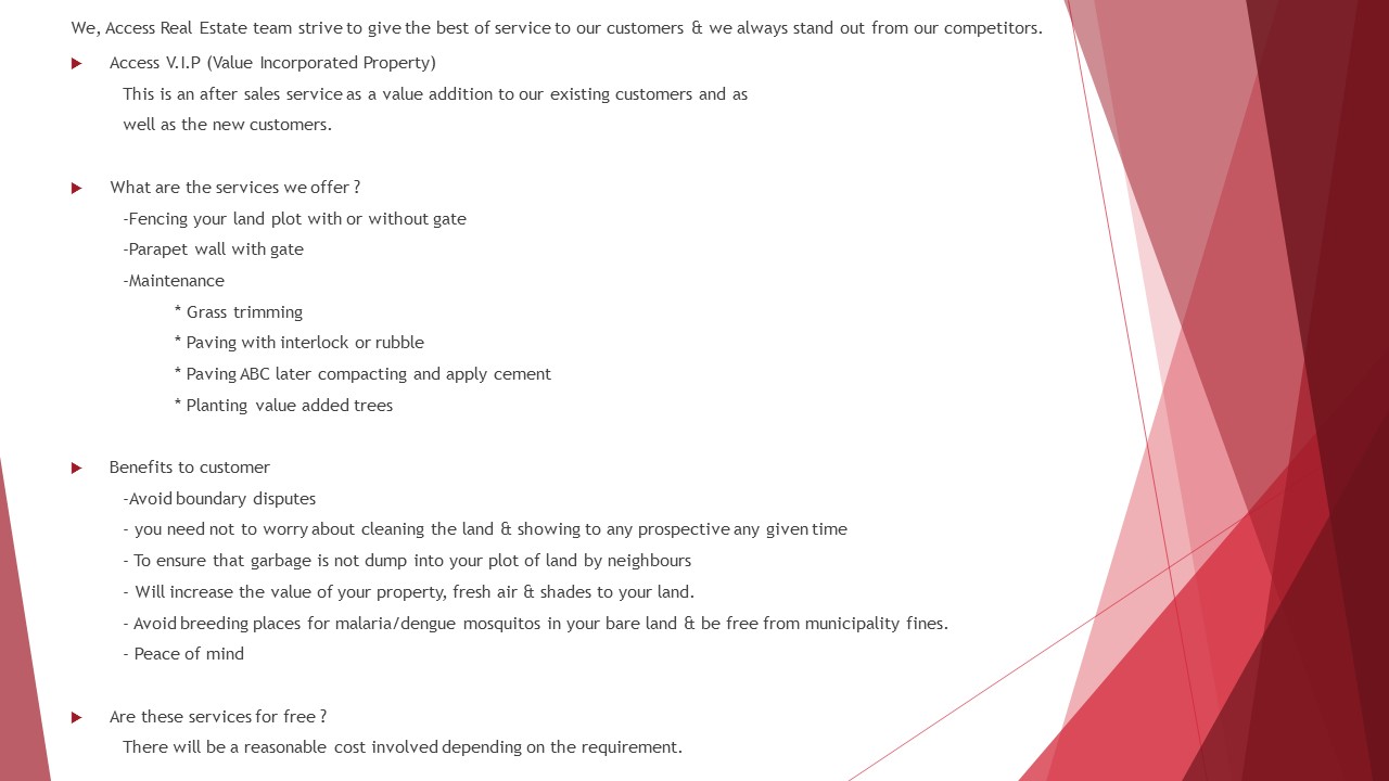 We provide friendly and professional services to assist our customers to meet their requirements, such as: