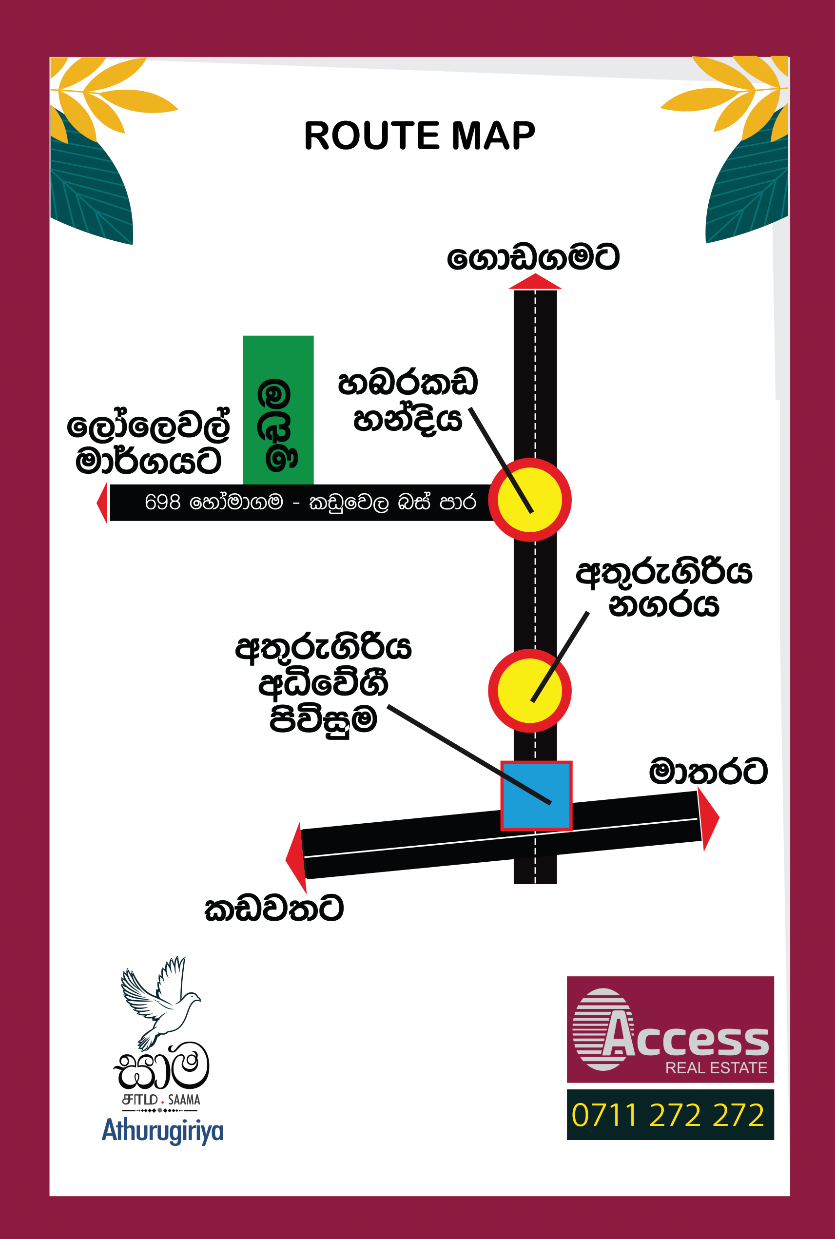 Located in Athurugiriya, Habarakada facing the Homagama - Kaduwela 698 bus route.