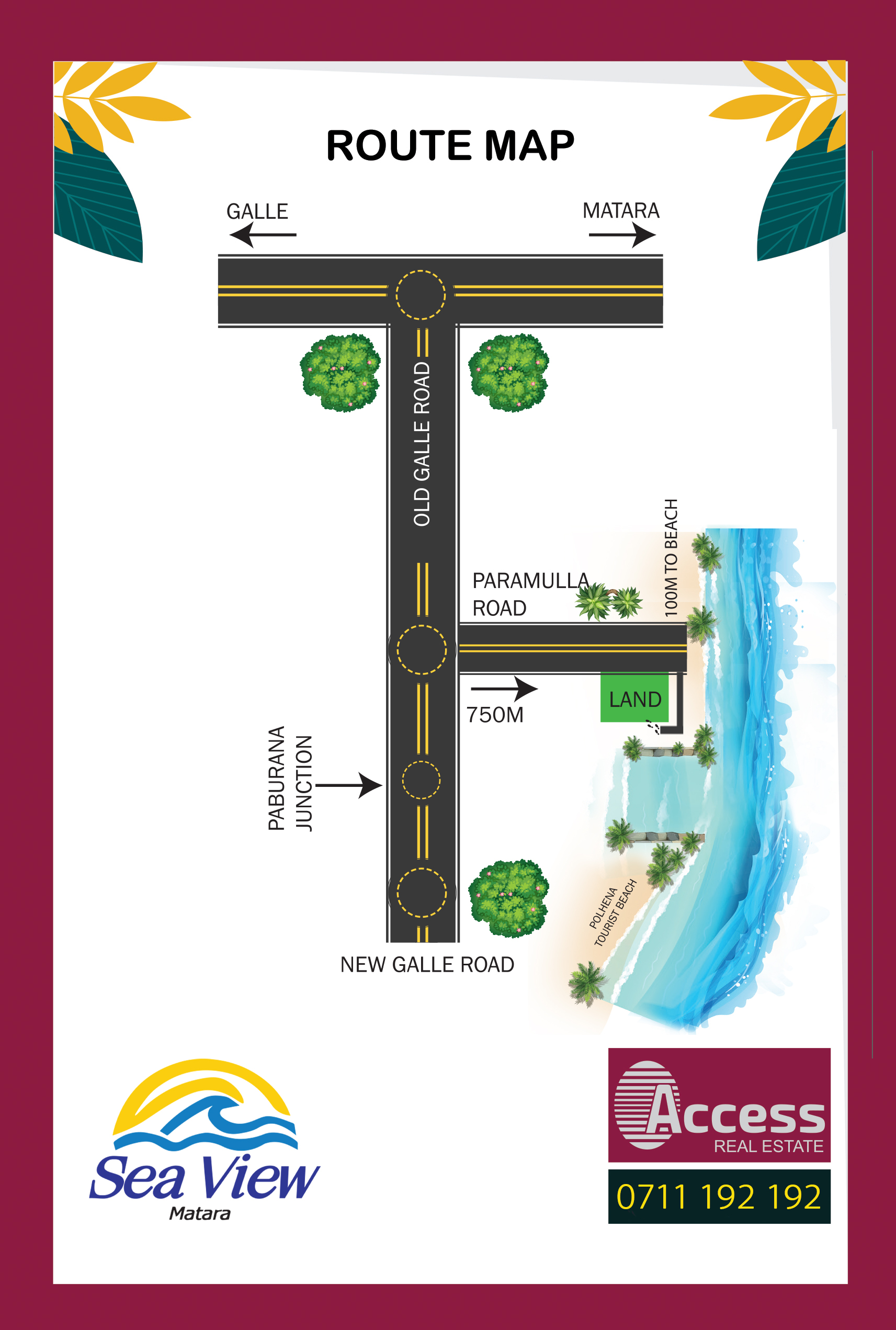 Located 750m away from old Galle road facing Paramulla road. 100m to the sea and 1Km to Polhena beach with a serene ocean view, available in 6, 7P.
